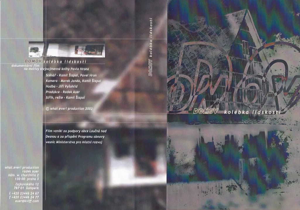 Domov - kolébka lidskosti (2002) Ocenění: 1. cena a cena Ministra zemědělství - Vysokov u Náchoda - festival filmů se zemědělskou a vesnickou tématikou (2005) | Cena města Ústí nad | Orlicí 2004 Cena města Rychnova nad Kněžnou 2004 Dokumentární film o tradiční architektuře Jeseníků a podhůří, inspirovaný knihou Pavla Hrona z Vrbna pod Pradědem. Film mapuje vývoj tradiční architektury v Jeseníkách v návaznosti na nejdůležitější historické události v oblasti. Odhaluje také chyby a největší nedostatky úprav tradičních staveb a novostaveb. Scénář: Pavel Hron a Kamil Šlapal | Produkce: Radovan Auer | Střih: Kamil Šlapal Kamera: Marek Janda a Kamil Šlapal | Režie: Kamil Šlapal Při příležitosti pátého výročí smrti Pavla Hrona (1940 - 2008), jsme v létě 2013 dokončili remasterovanou verzi filmu.